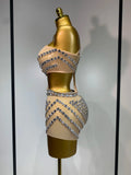 Luxury Diamonds Sexy Mesh Perspective Two Pieces Outfit Performance Dancer Singer Costume Nightclub Women's Set Birthday Wear