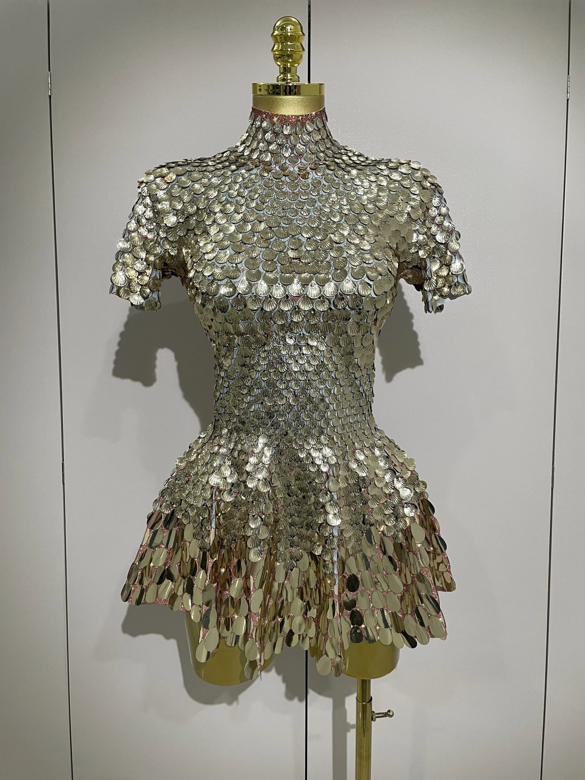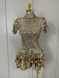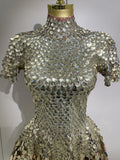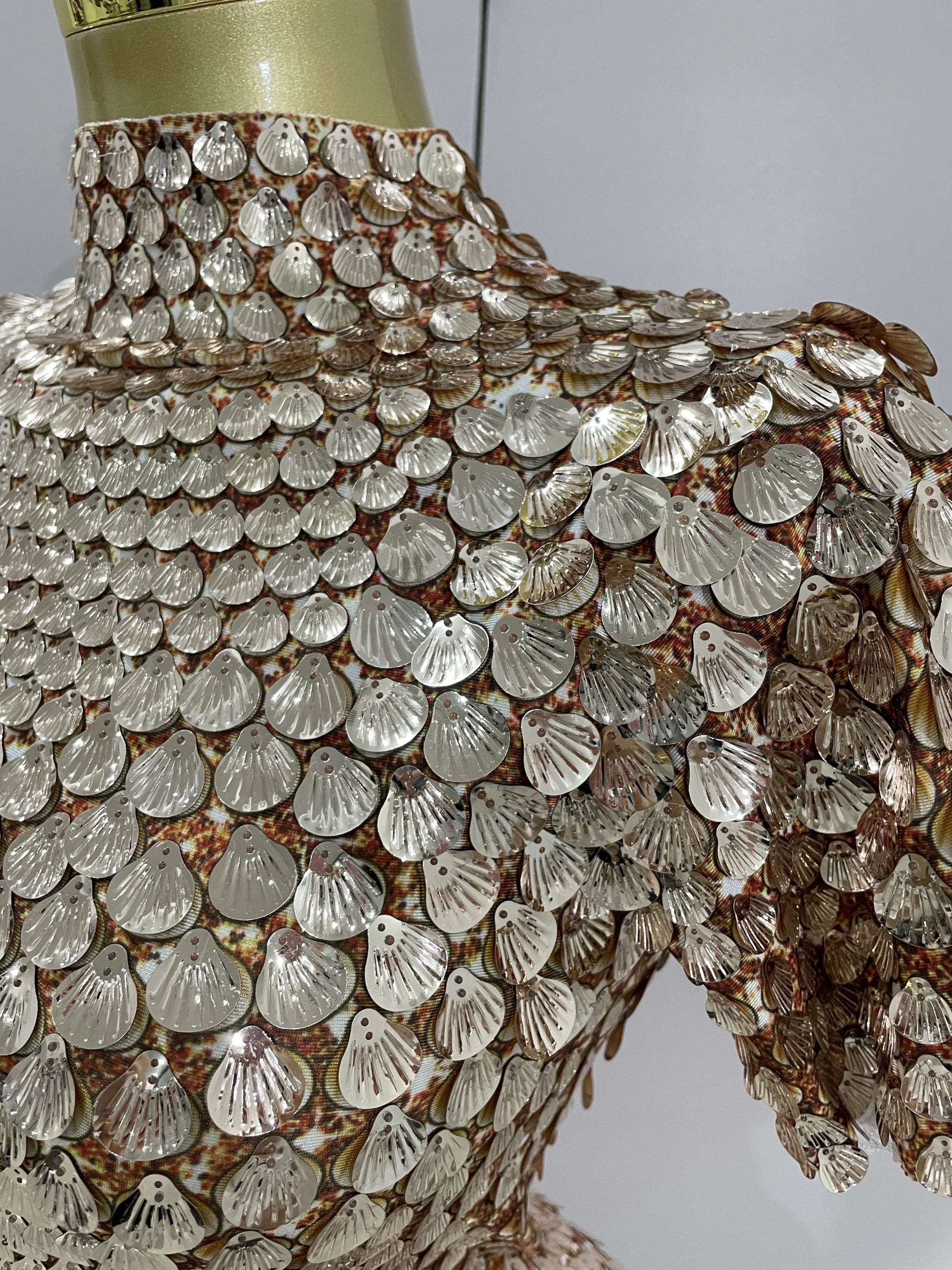 Luxury Shiny Shell Sequins Bodysuit Dress Women Sexy Nightclub Dance Performance Clothing Birthday party Dresses