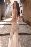 Vestidos de noiva de luxo com apliques de renda para mulheres, ilusão sexy, decote em V, alças finas, vintage, costas nuas, botões, vestido de noiva