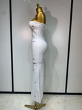 Luxury Rhinestone Sexy Strapless Backless Long Bodycon Bandage Dress 2025 White Elegant Evening Party Birthday Club Dress