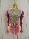 Luxury Sparkly Crystals Sexy Mesh White Velvet Short Dress 2025 Women Elegant Evening Prom Birthday Party Dresses Stage Costume