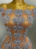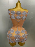 Luxury Sparkly Rhinestone Mesh Mini Dress 2025Women Sexy Nightclub Party Dance Performance Costume Singer Dancer Show Stage Wear