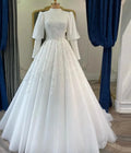 Vestidos de noiva muçulmanos com apliques de contas, manga longa bufante, vestido de baile de renda, vestido de noiva princesa