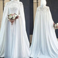 Muslim Robe De Mariée Wedding Dresses for Women A-Line Chiffon High Neck Lace Flowers Dubai Arabic Bridal Gowns with Hijab