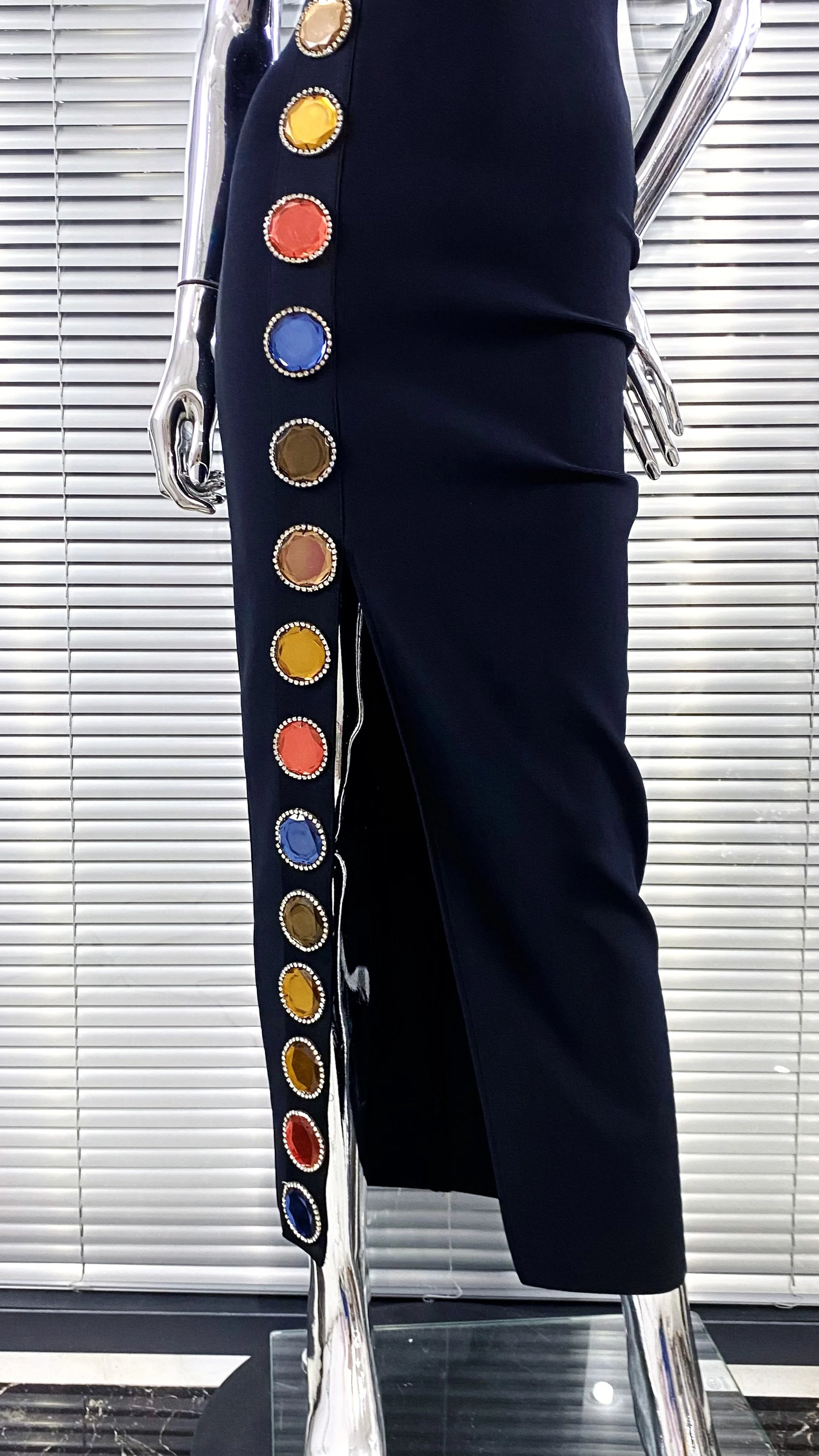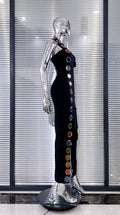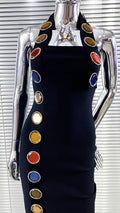 New Summer Special Design Shining Colorful Diamonds Sexy Halter Black Bandage Dress Woman Birthday Party Dress Club Party Outfit