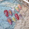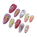 Ocean Series Fake Nail 10pcs Handmade 3d Colored Press On Nails Pearl And Buterfaly Design Almond False Nail Patches Deachable