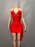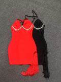 Red Black Color Women Sleeveless Sexy V-Neck Bodycon Bandage Mini Dress Celebrate Nightclub Party Birthday Outfit Vestido