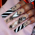 Scary Blood Skull Fake Nails Long Coffin Ballet Halloween Style False Nails 24pcs Wearable Press on Nail tips for Halloween Gift
