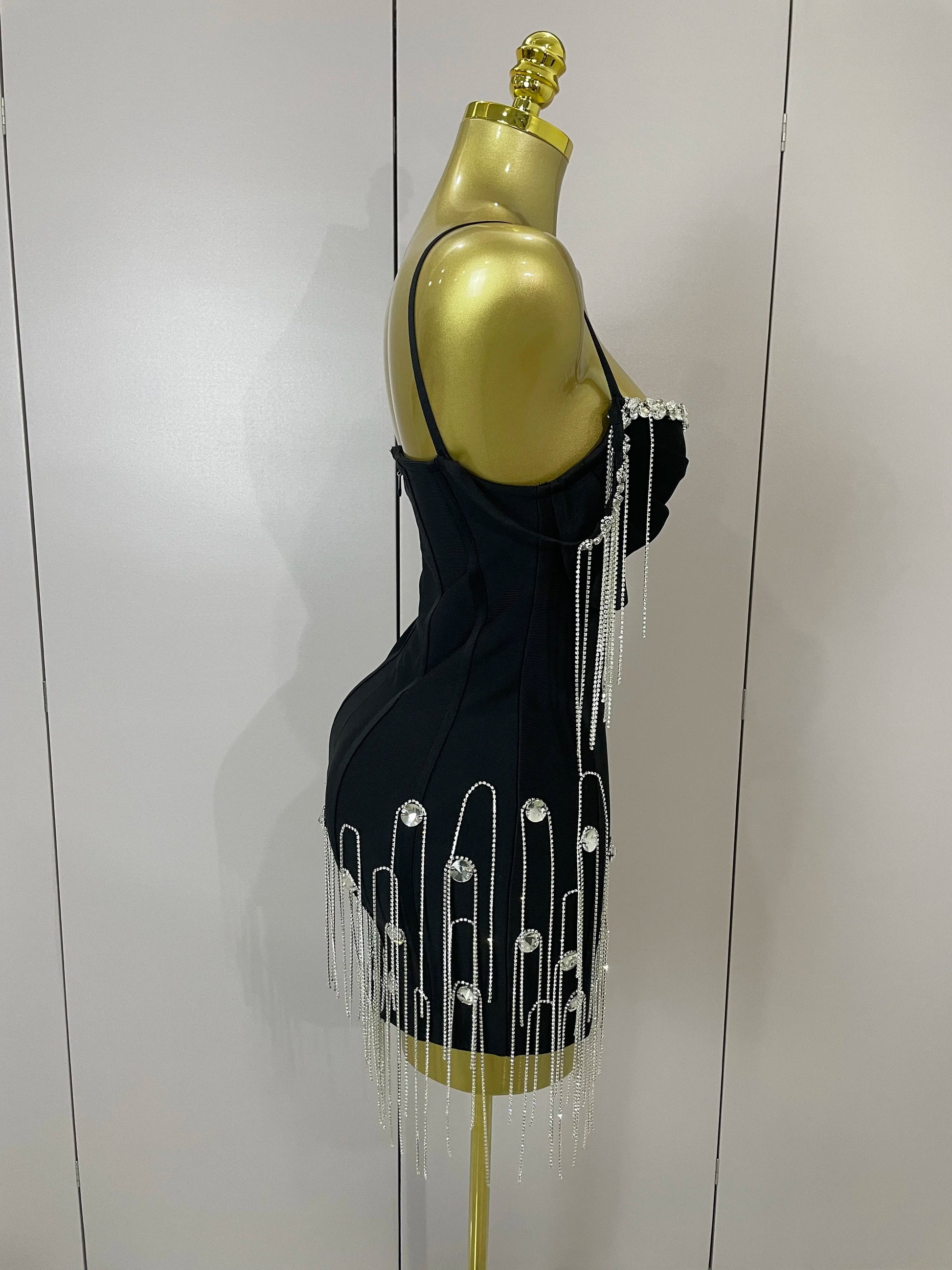 Sexy Backless Spaghetti Strap Black Sleeveless Bodycon Bandage Dress Women Elegant Prom Gown Club Evening Party Birthday Dresses