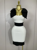 Sexy Bow Tie Black White Patchwork Bodycon Bandage Dress 2025 Women Celebrity Elegant Evening Club Party Birthday Dresses