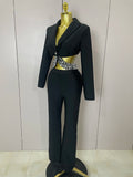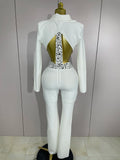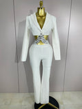 Sexy Cut Out Long Sleeve Beading Bodycon Two Pieces Pants Bandage Set Women Celebrity Designer Fashion Women Luxury Birthday Set