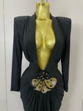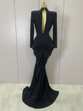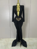 Sexy Deep V-Neck Long Sleeve Bodycon Long Dress 2025 New Women Spring Elegant Evening Party Celebrate Cocktail Outfit Vestido