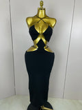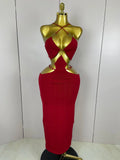 Sexy Halter Hollow Out Sleeveless Black Red Bodycon Long Bandage Dress 2025 Women Celebate Elegant Luxury Birthday Club Dress