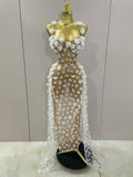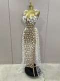Sexy Mesh See Through Flowers Backless Long Dress 2025 Women Elegant Party Wedding Celebrate Evening Gown Prom Hotwife Outfit