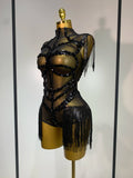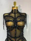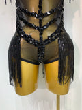 Sexy Mesh SeeThrough Black Rhinestone Bodysuit Singer Dancer Show Stage Outfit Celebrate Birthday party Club Performance Waer