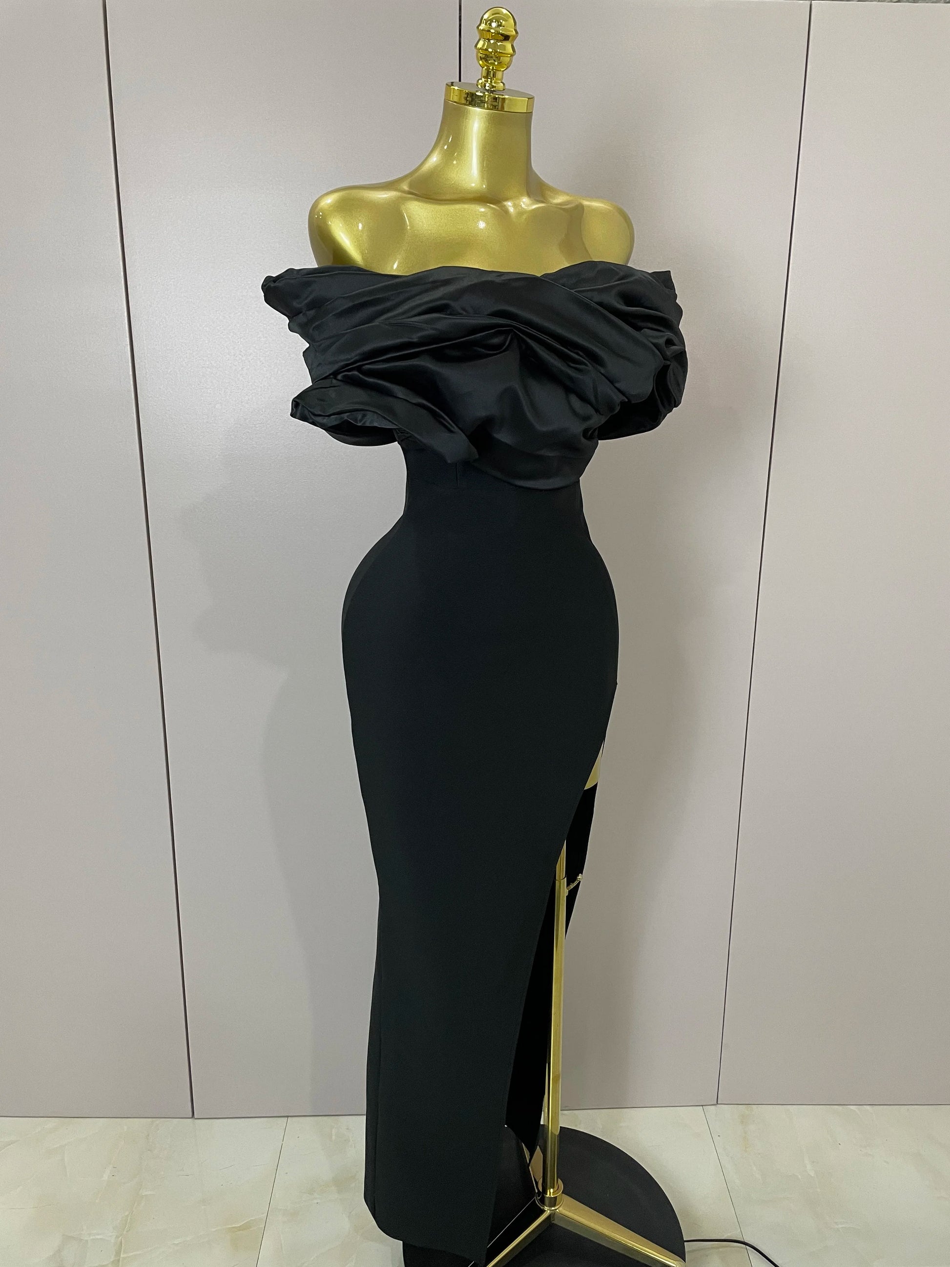Sexy Off-Shoulder Side Slit Solid Color Pleat Skirt Strapless Bandage 2025 Women Evening Luxury Birthday Formal Party Dress