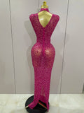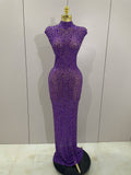 Sexy Sparkly Crystal Diamonds Mesh See Through Long Dress 2025 New Women Elegant Party Costume Singer Stage Performance Outfit