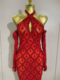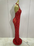 Sexy Sparkly Rhinestones Halter Mesh Long Dress With Gloves 2025 Women Celebrate Evening Wedding Prom Birthday Dress Shoot Wear