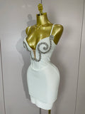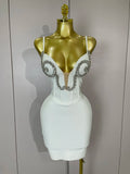 Sexy White Spaghetti Strap V Neck Crystal Sleeveless Bandage Dress Women Elegant Evening Party Cocktail Luxury Birthday Gowns