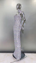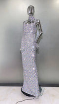 Shinning Sequins Women Sleeveless Sexy Square Collar Bodycon Long Fashion Evening Party Dress Birthday Prom Outfit Vestido