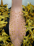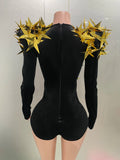 Shiny Gold Rhinestone Black Velvet Long Sleeve Bodysuit 2025 Women Evening Party Club Gala Hosts Night Club Bar Stage Costumes