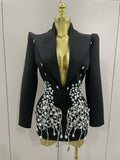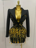 Sparkly Crystal Chains Pearls Long Sleeve Mini Dress 2025 Women Birthday Evening Party Nightclub Outfit Singer Wedding Costume