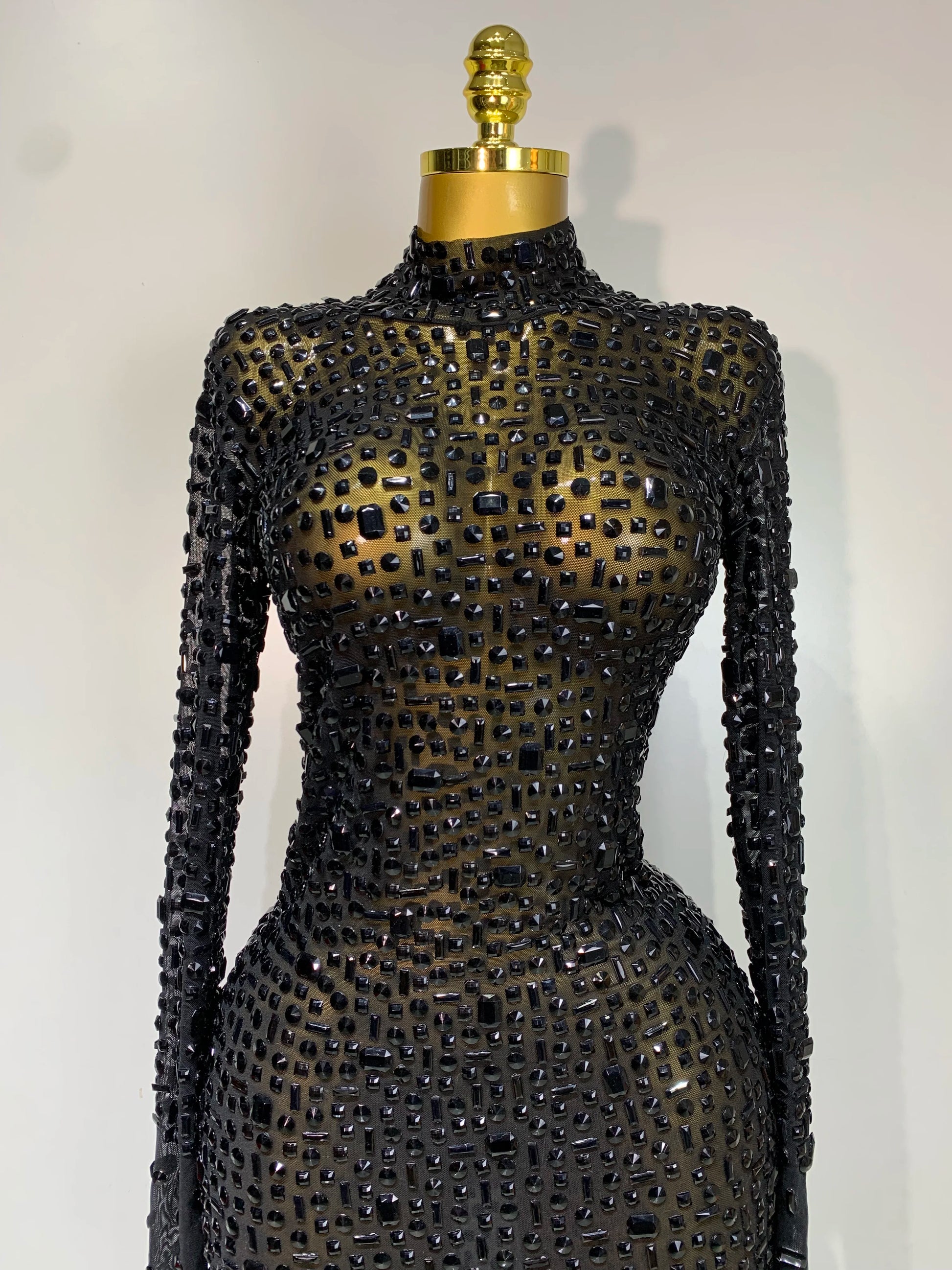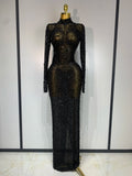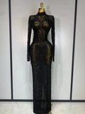 Sparkly Luxury Rhinstones Long Sleeve Elegant Party Dress Women 2025 Performance Stage Outfit Evening Birthday Prom Gown