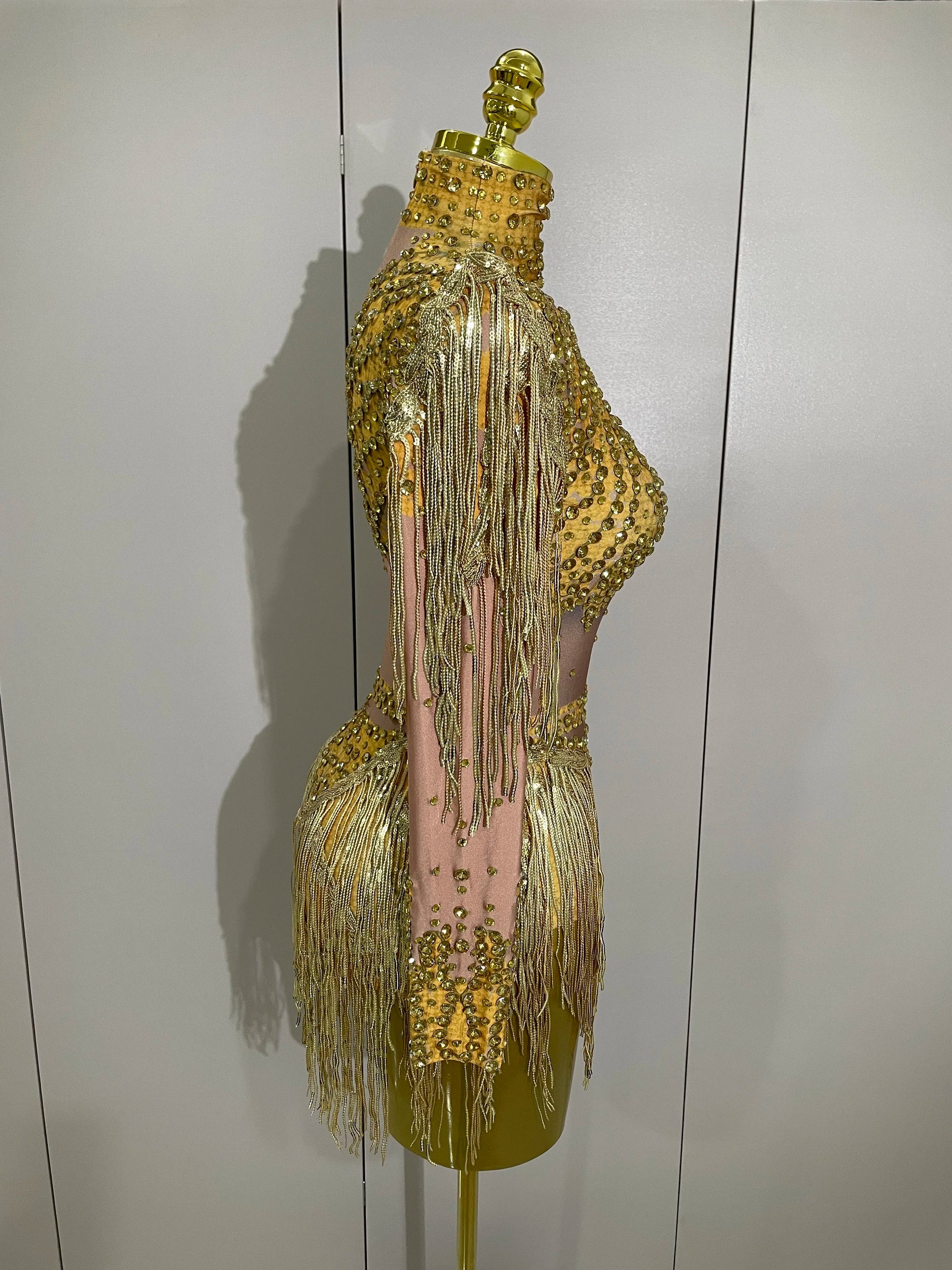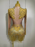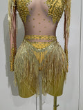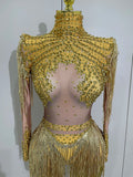 Sparkly Rhinestone Sequin Tassel Stretch Bodysuits 2025 Women Birthday Party Nightclub Dj Stage Performance Costume