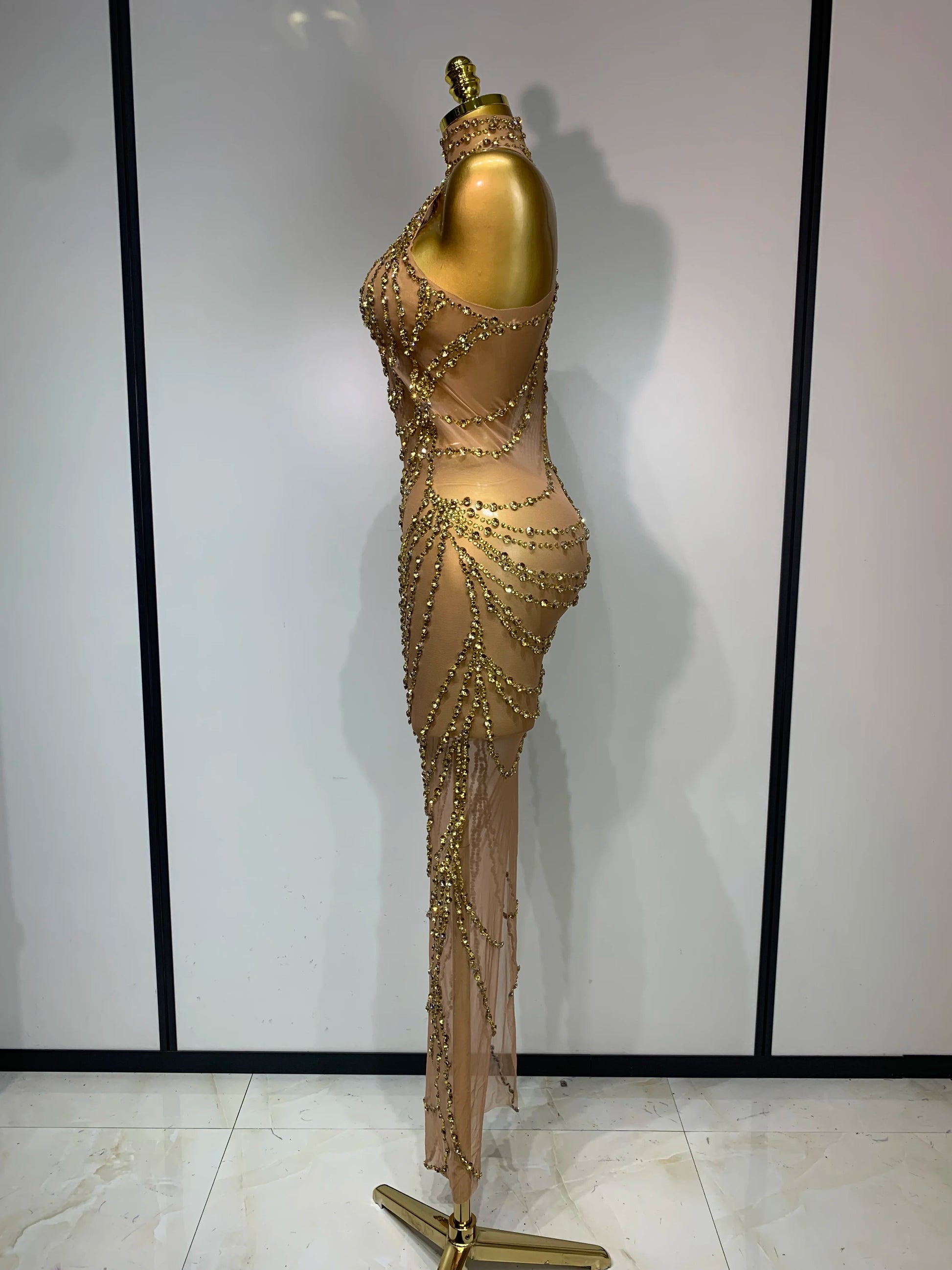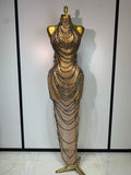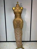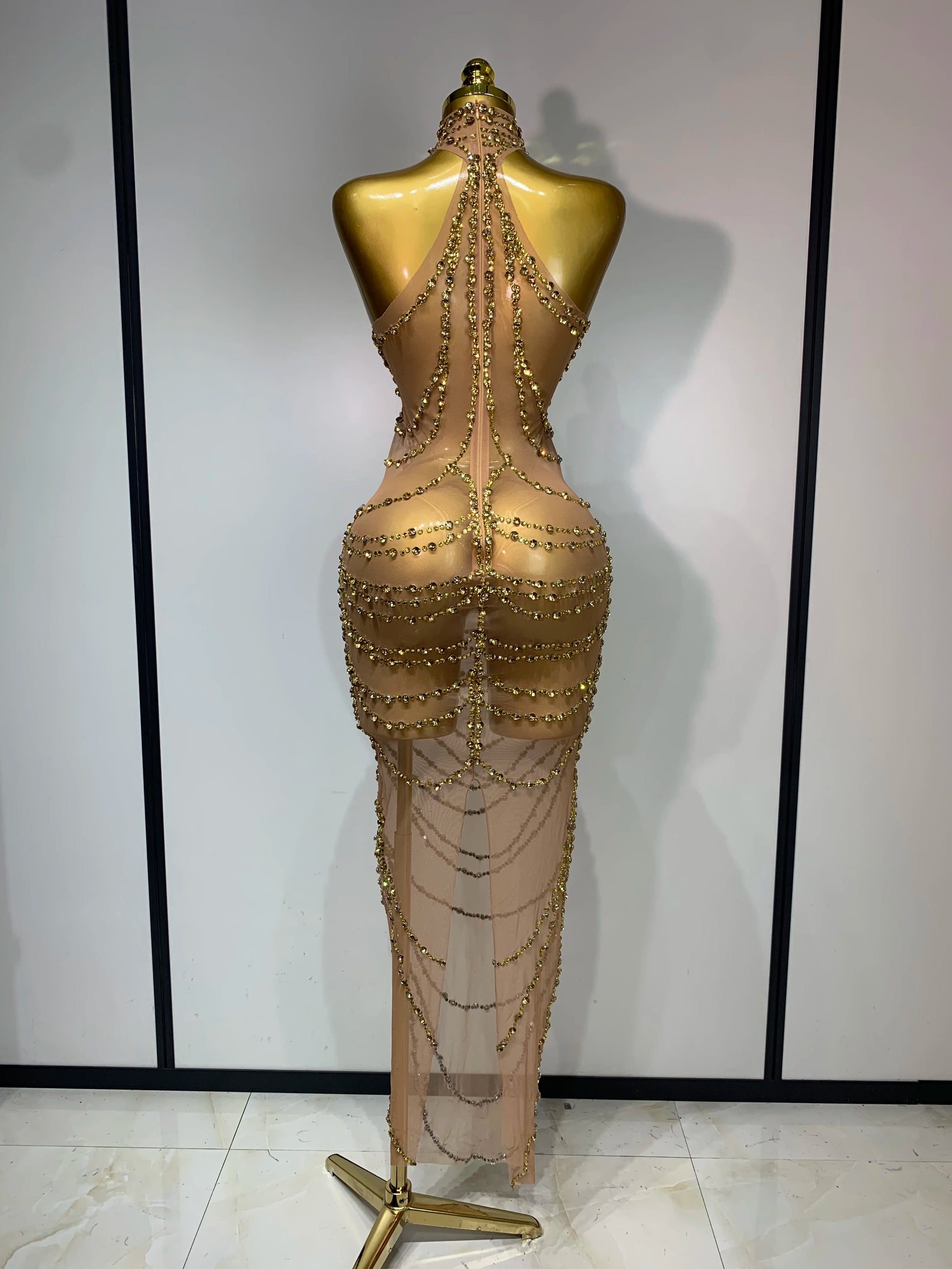 Sparkly Rhinestone Sexy Transparent Mesh Long Dress 2025 Women Luxury Birthday Club Party Gown Stage Singer Performance Costume