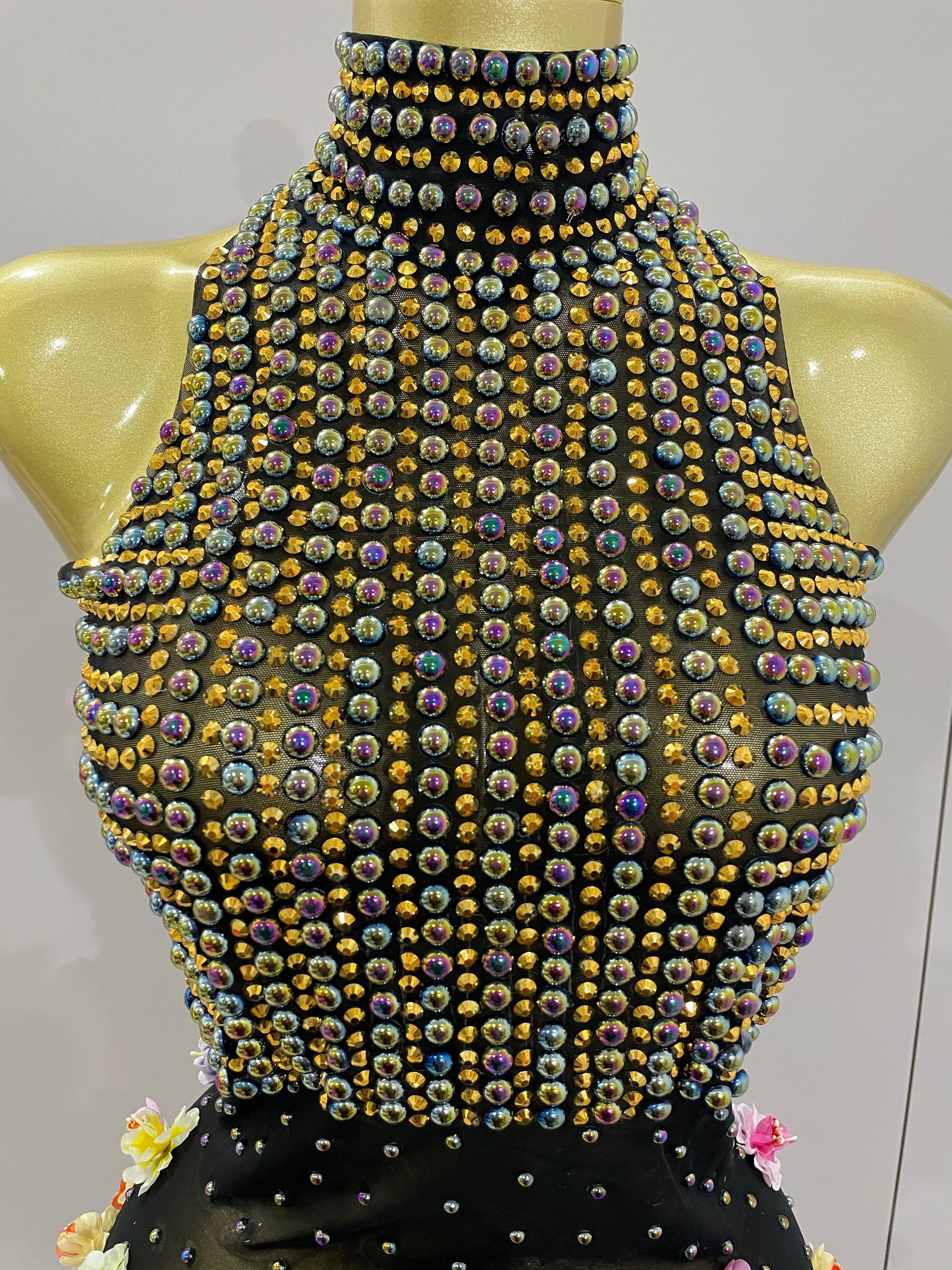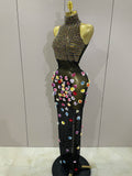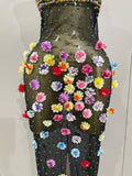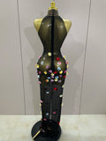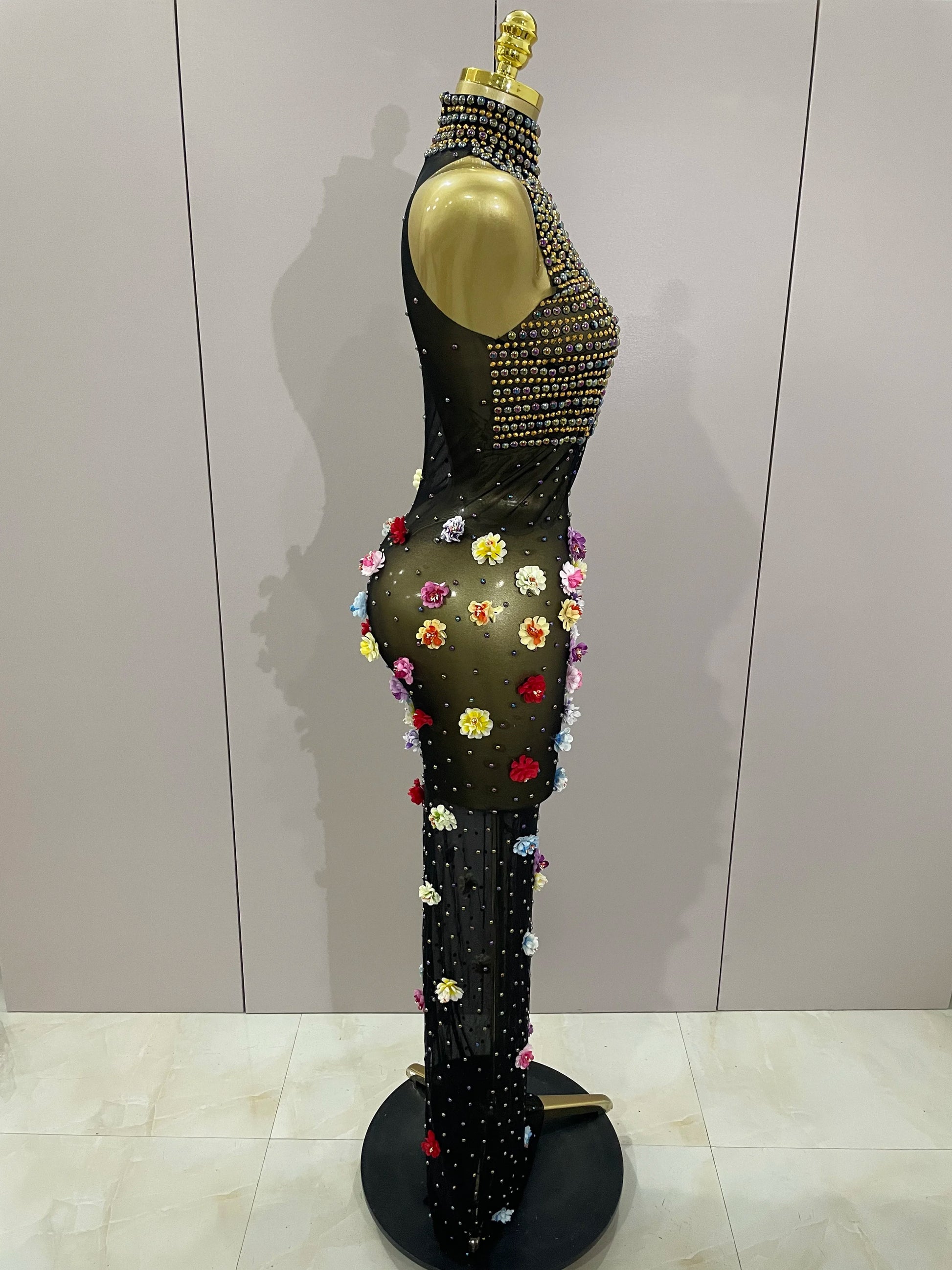 Sparkly Rhinestones Flowers Sexy See Through Long Dress 2025Women Birthday Celebrate Wedding Evening Prom Dress Photo Shoot Wear