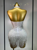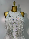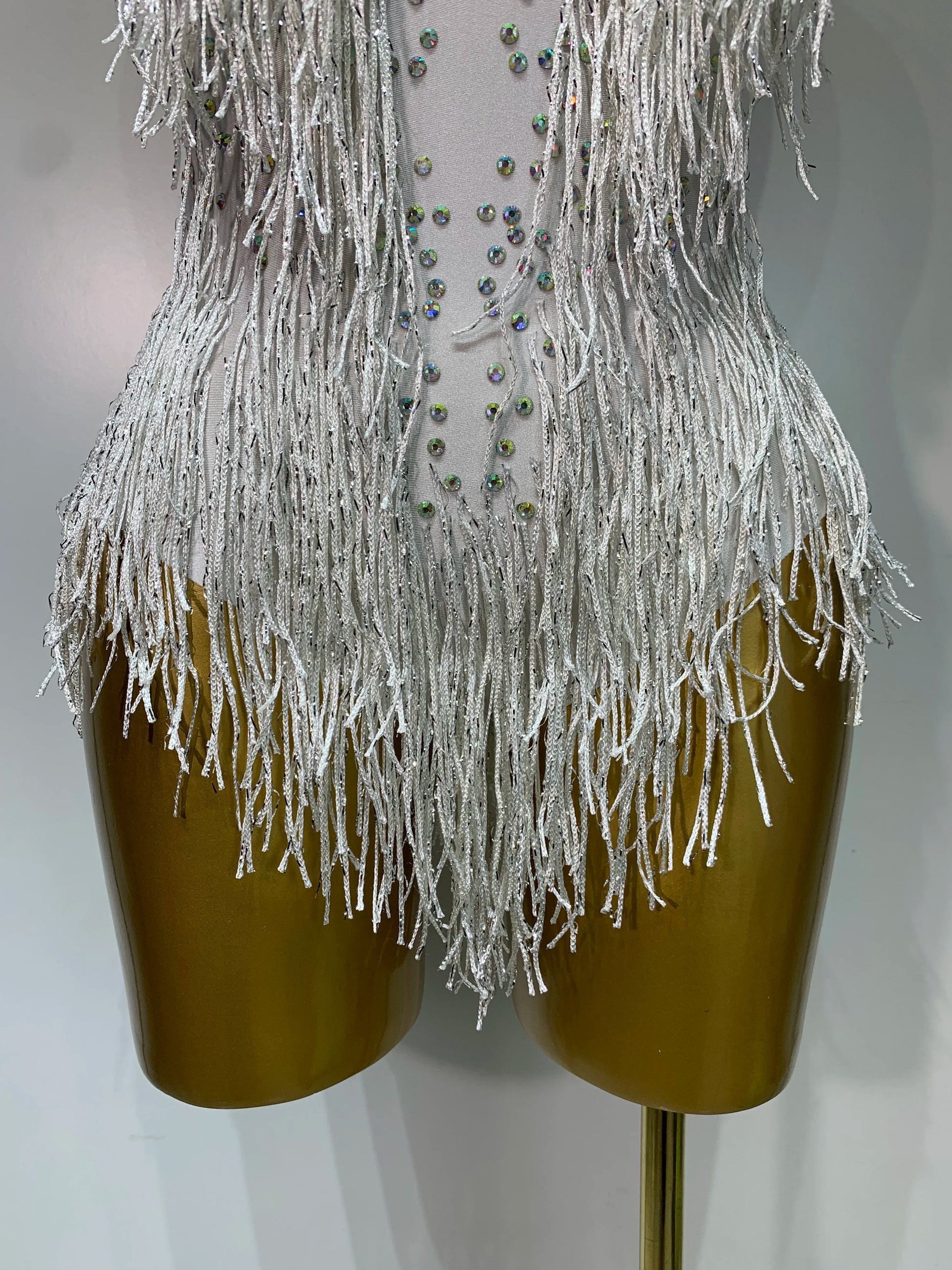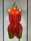 Sparkly Rhinestones Fringes Leotard Women Nightclub Evening Party Outfit Dance Costume Stage Outfit Sexy Performance Bodysuit