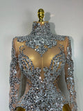 Sparkly Silver Gold Sequins Short Dress Sexy High Slit Women Nightclub Evening Party Dress Birthday Singer Stage Show Outfit