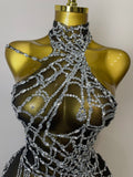 STOCK 2025Women Sparkly Diamond Sexy Mesh Jumpsuit Nightclub Bar Party Show Gogo Dancer Clothing Drag Queen Outfit Stage Costume