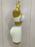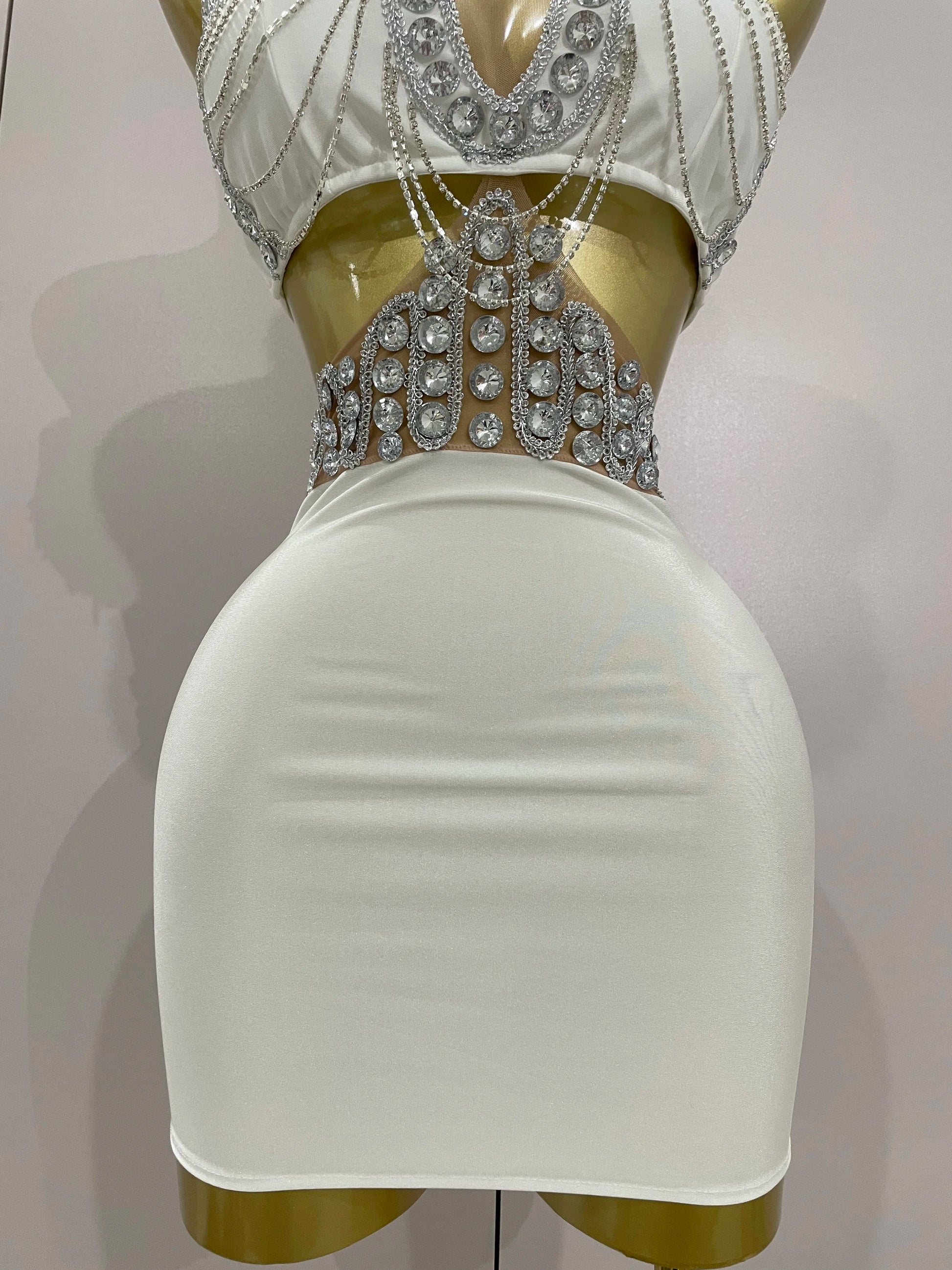 STOCK Luxury Shiny Diamond Chain White Sexy Sleeveless Bodycon Mini Dress 2025New Evening Birthday Party Nightclub Stage Costume