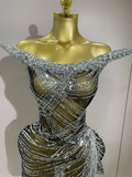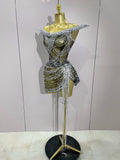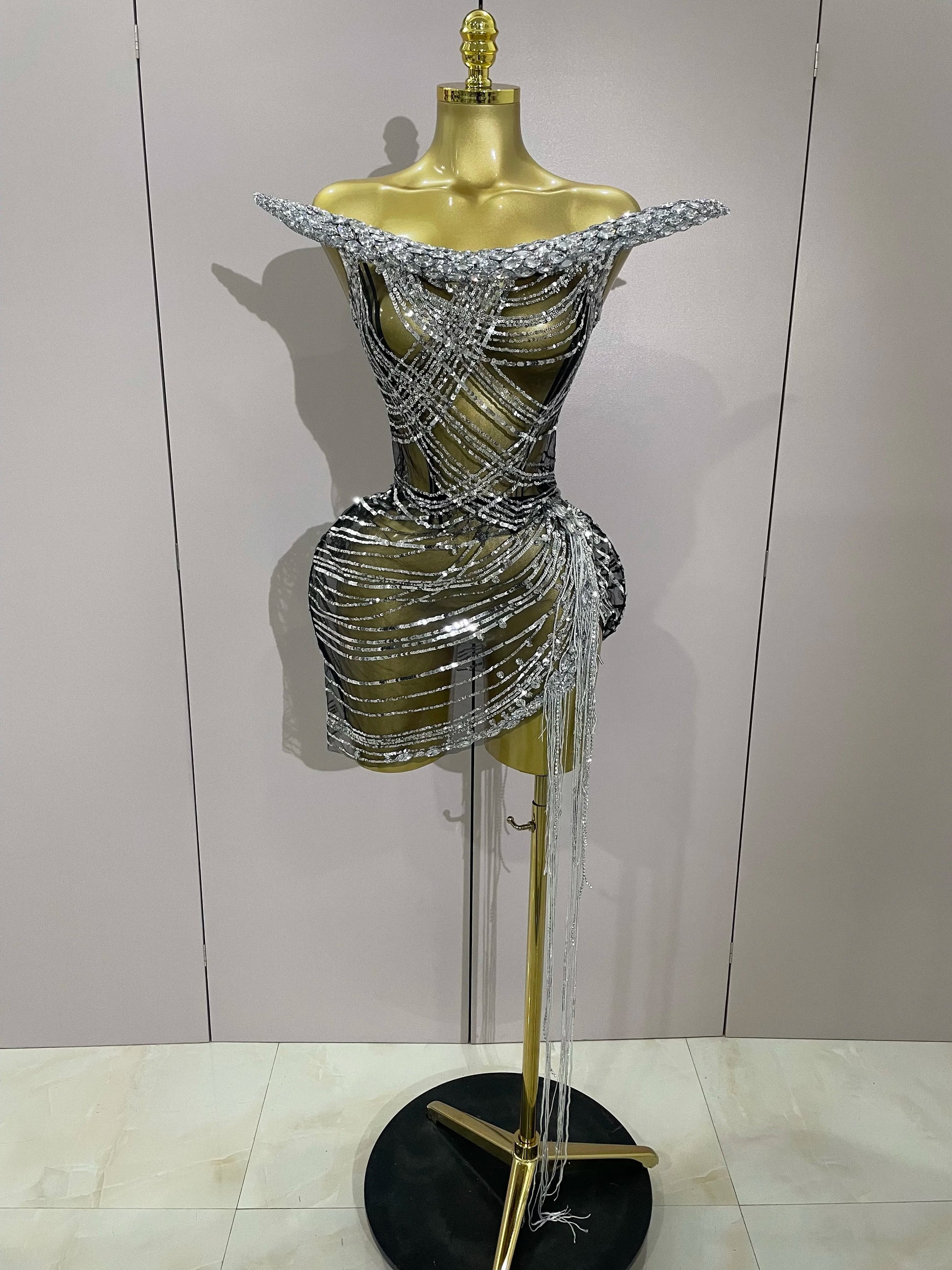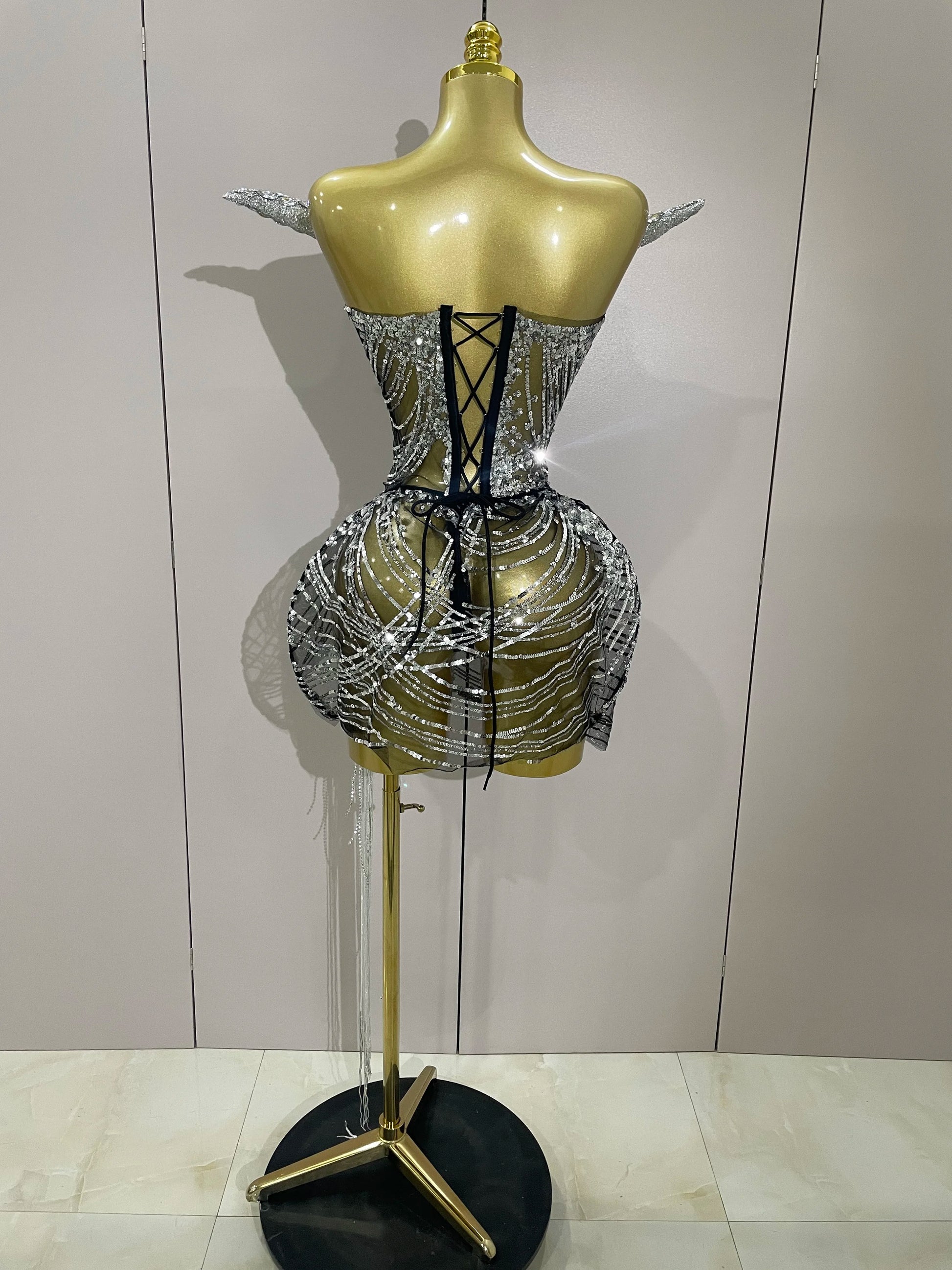 Stock Sexy Shinning Diamond Tassels Chain Strapless Tops Skirt 2 PCS Women Evening Party Celebrate Nightclub Performance Costume