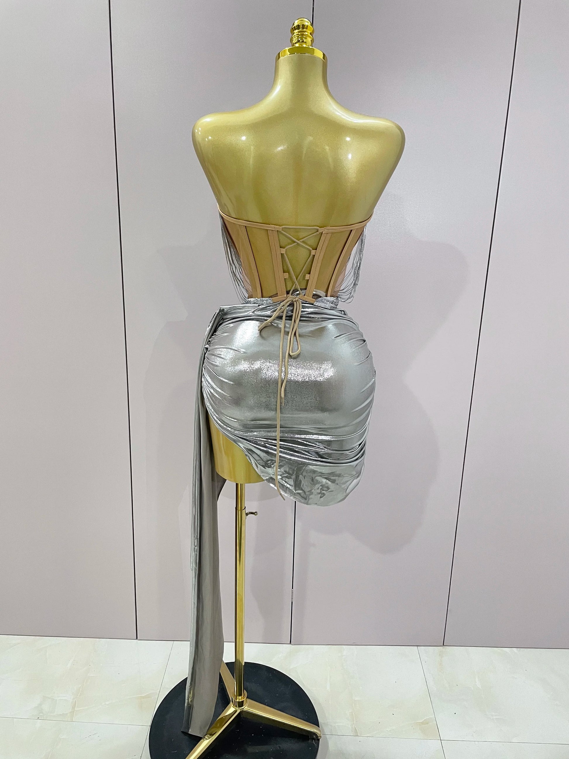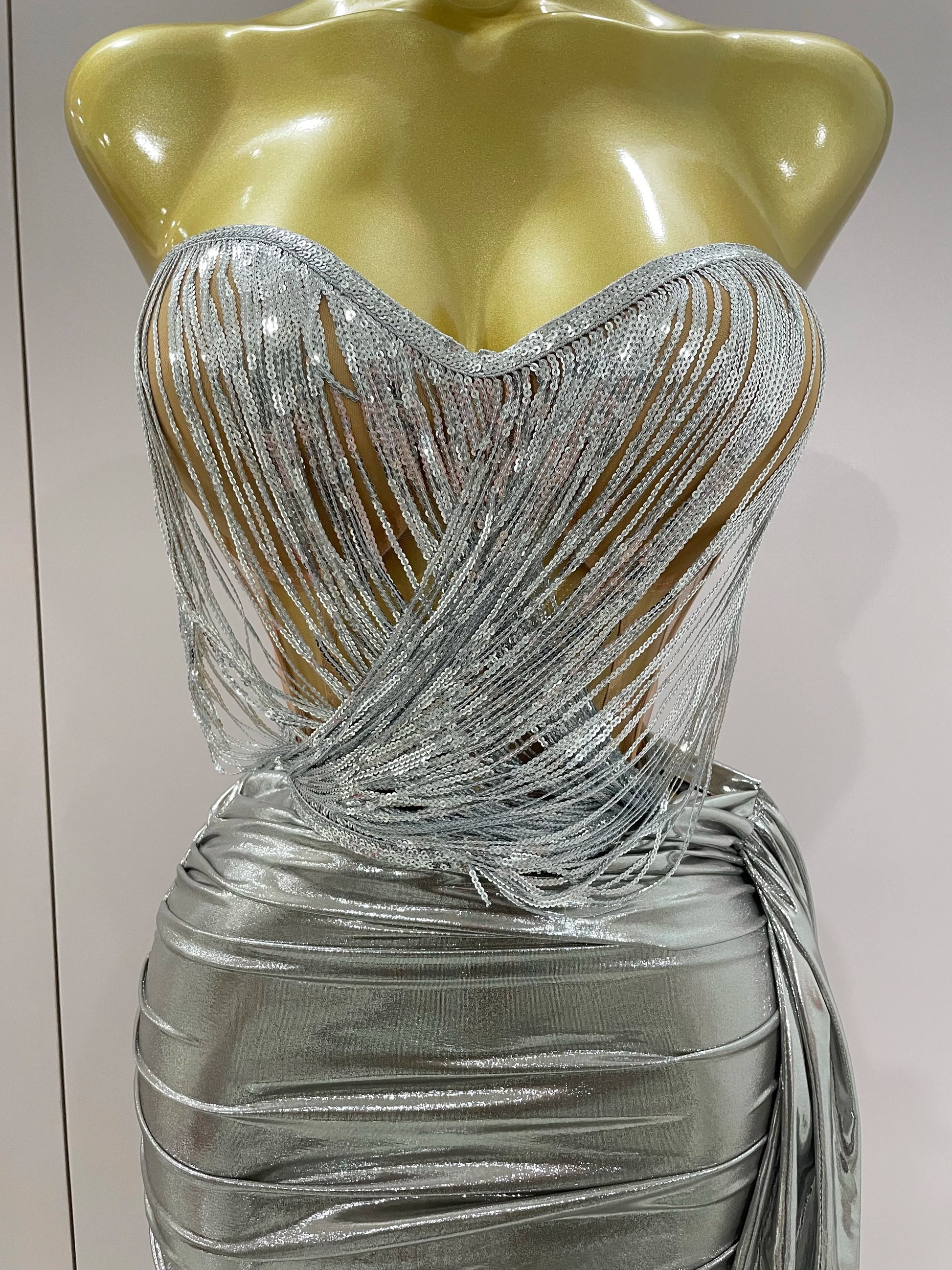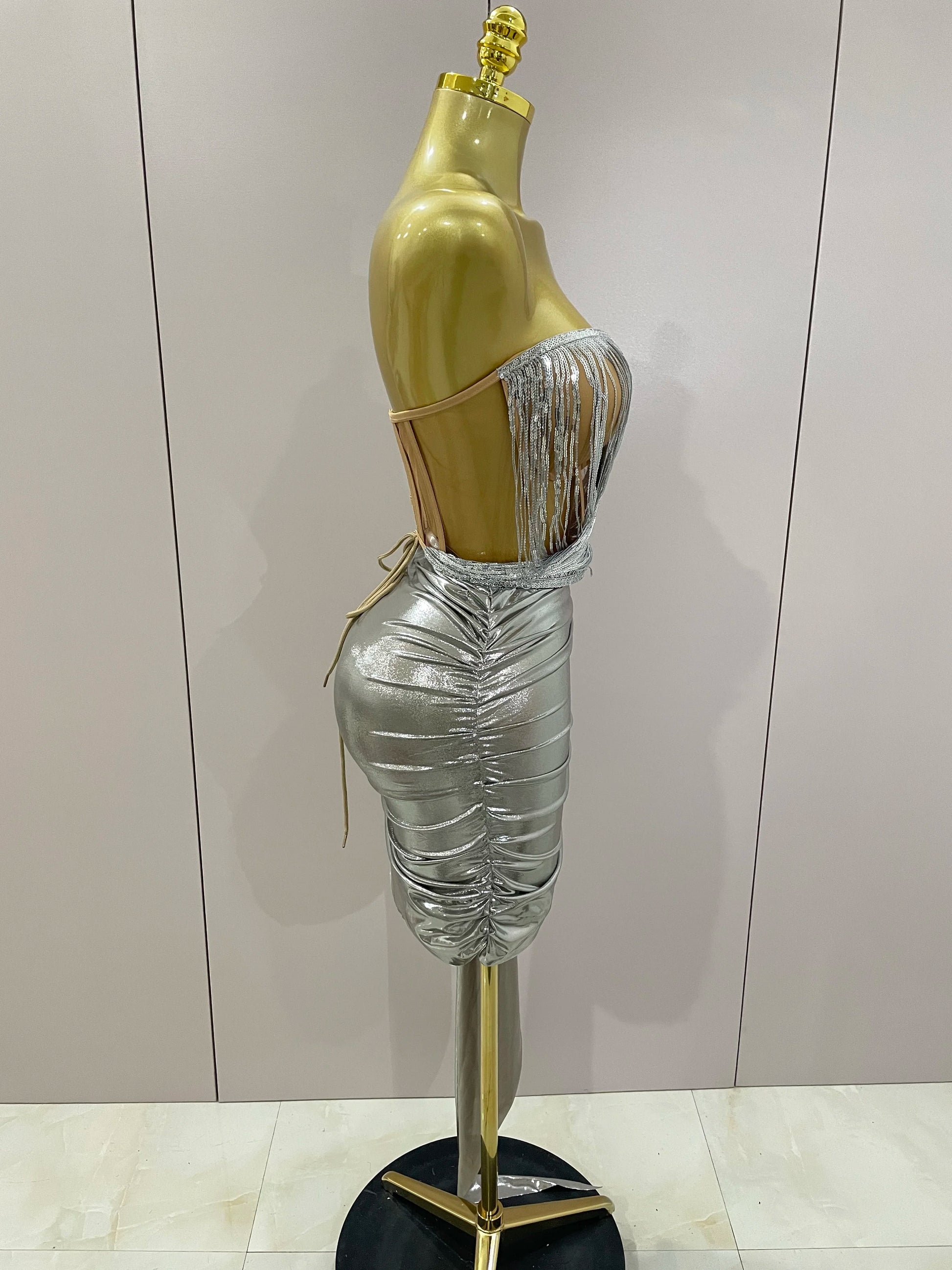 Stock Shiny Silver Sequin Tassels Mini Dress 2-piece Set 2025 New Women Evening Birthday Party Club ShootPhoto Stage Costume