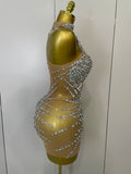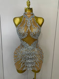 STOCK Sparkly Rhinestones Sexy Mesh See Through Dress Party Evening Prom Celebrate Birthday Dress Singer Dancer Show Stage Wear