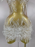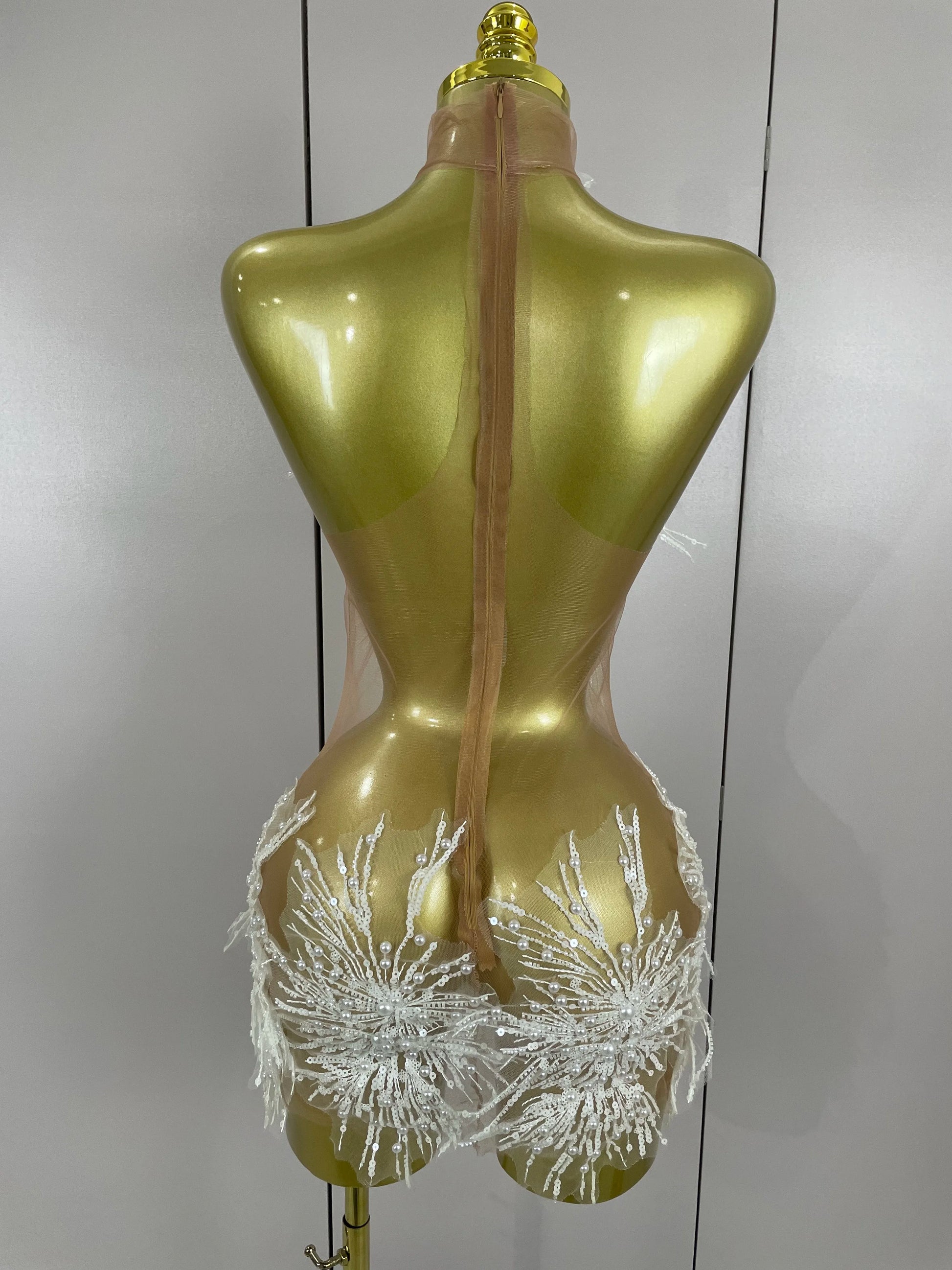 Stock Women Sexy Mesh See Through Pearl Lace Party Mini Dress Celebrate Birthday Photo Shoot Wear Performance Stage Costume