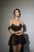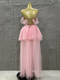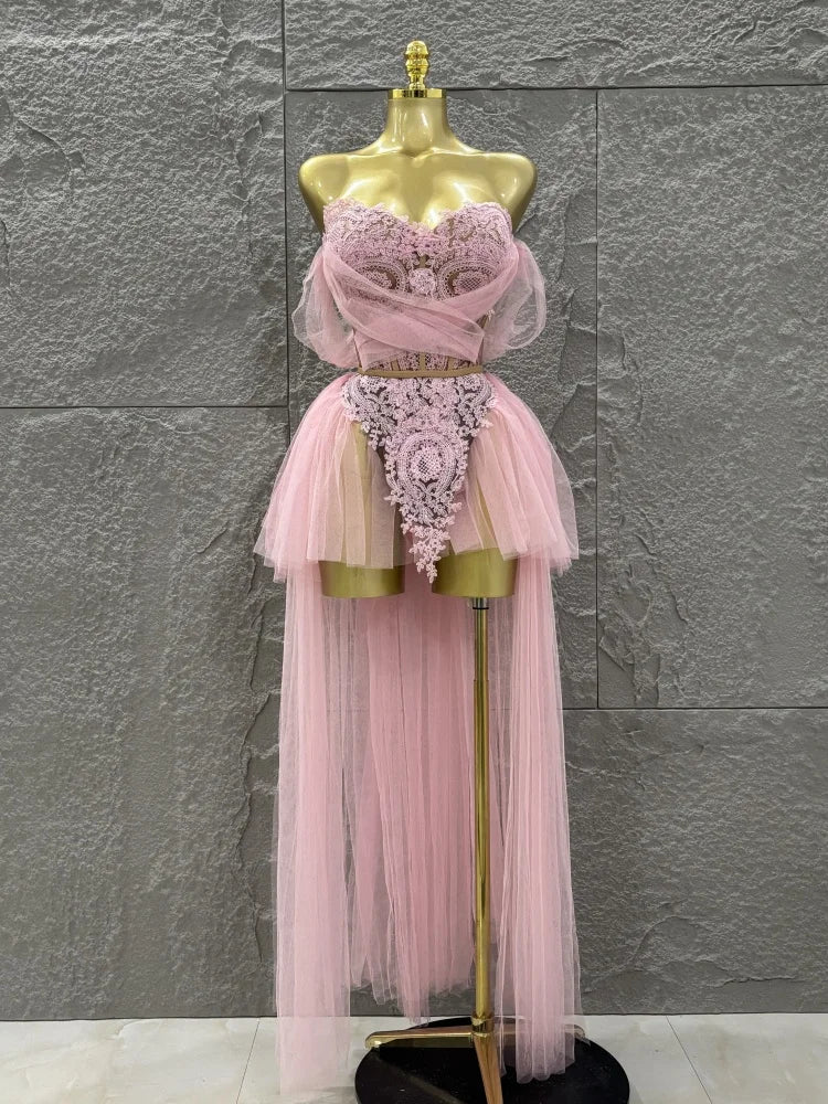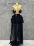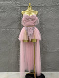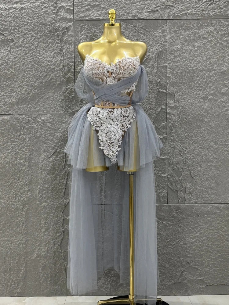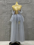 Women Sexy Strapless Laced-up Mesh 2 Pieces Long Maxi Dress Celebrate Evening Party Birthday Prom Outfit