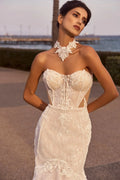 Vestido de noiva de renda com decote em forma de coração, vestido de noiva princesa sereia romântica