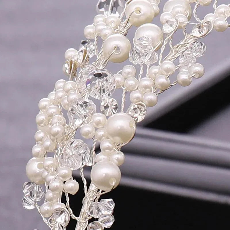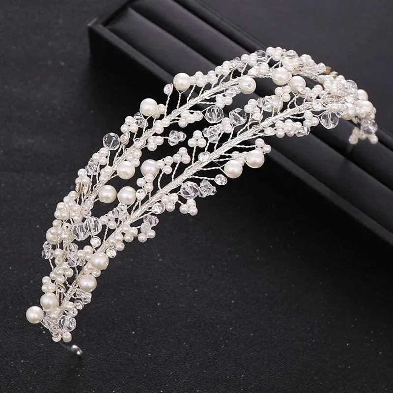 Tiara de cabelo de cristal pérola, faixa de cabeça, tiara para mulheres, noiva, casamento, acessórios para cabelo, joias, strass, festa, coroa de noiva, presente