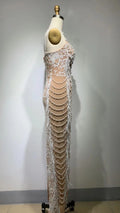 Handmake Luxury Women Sleeveless Sexy Feathers Pearl Beading Bodycon Long Dress Fashion Celebrate Red Carpet Dress
