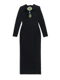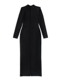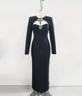 Women Long Sleeve Shinning Crystal Keyholes Bodycon Bandage Long Dress Elegant Evening Party Celebrate Outfit
