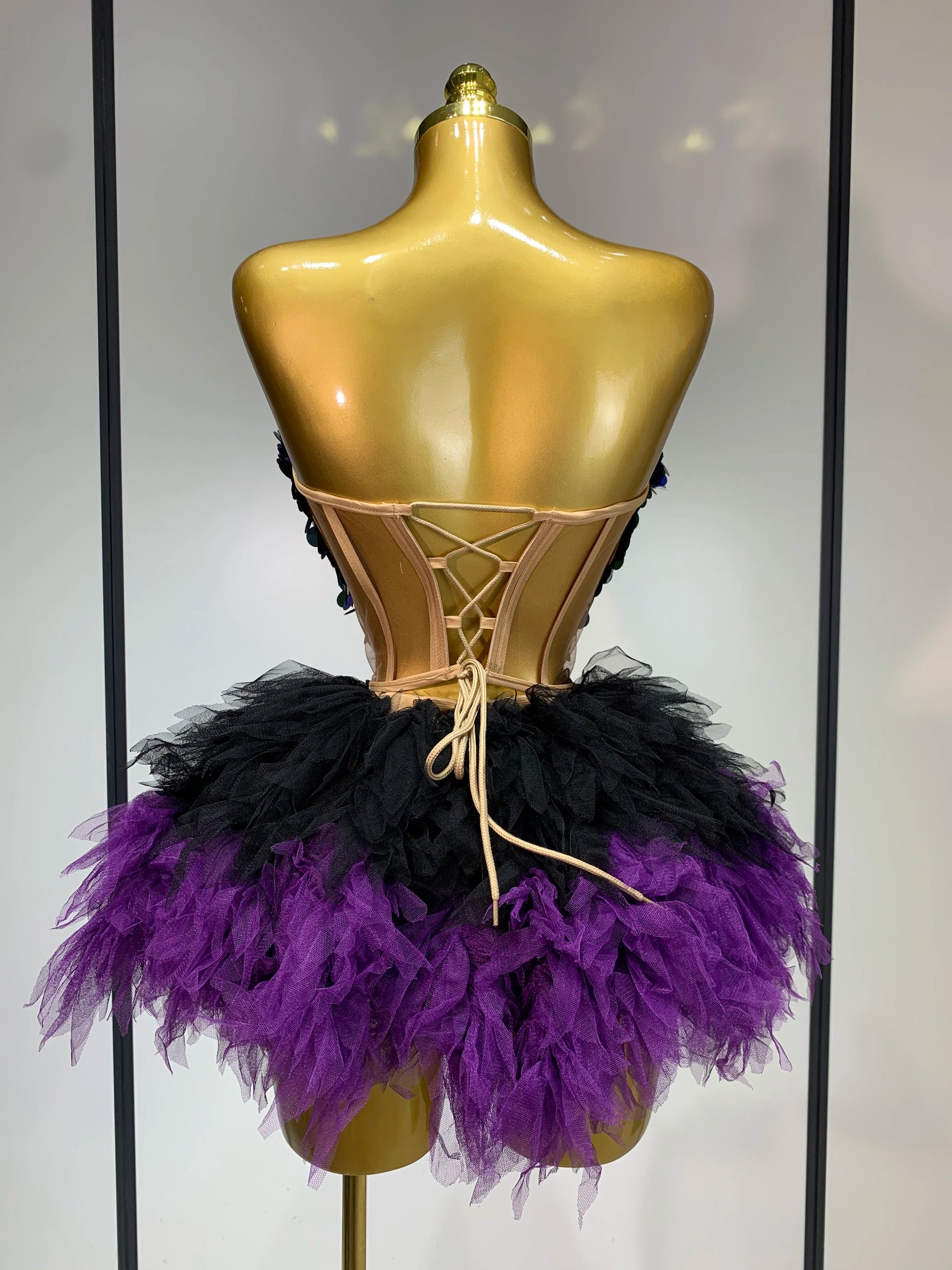 Two Pieces Set Women Stage Performance Costume Birthday Evening Party Nightclub outfit Drag Queen Sexy Backless Mini Skirt Set