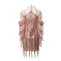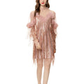 Solid Spliced Tassels Elegant Dresses for Women Round Neck Short Sleeves Patchwork Fungus Folds Dress Female New