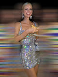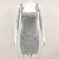 VC 2024 Summer New Women's Sexy Sleeveless Diamond Lace Up Mini Dress Shiny Crystals Bodycon Celebrity Club Party Cocktail Dress