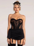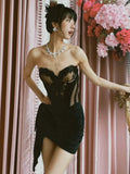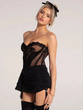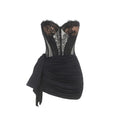 VC Black Lace Bow Mini Dress See Through Ruched Short Dress Celebrity Night Club Wear Cocktail Party Outfits