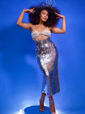VC Chic Sequin Pearl Detailed Cut-Out & Straps Dress for Trendy Parties Evening Gown