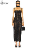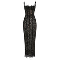 VC Elegant Black Lace Spaghetti-Strap Maxi Dress for Sophisticated Occasions Party Evening Gown