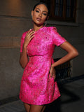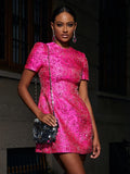 VC Elegant Dresses For Women Chic Beautiful Flower Jacquard Hot Pink Gowns Short Sleeve Mini Dresses Summer 2024